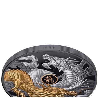 Niue 2024 YEAR OF THE DRAGON - 5 OZ LUNAR SERIES - GILDED 10 $ | 5 Oz Silver | Black Proof Mintage only 888 pieces